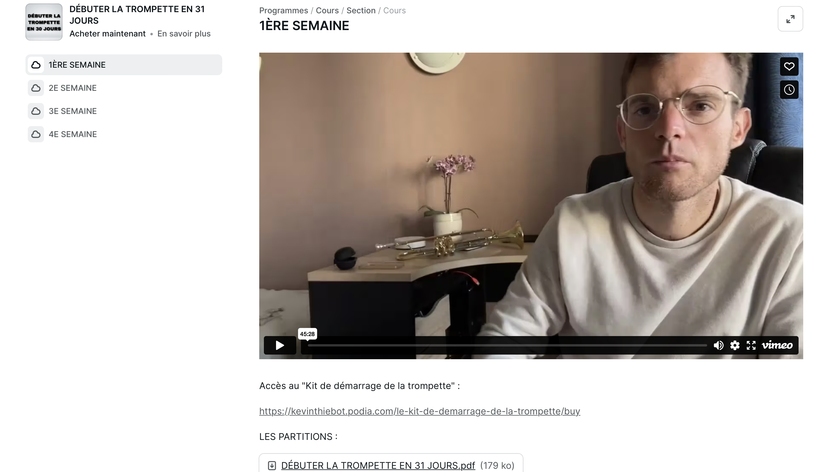 J’ai donc créé pour vous le cours “DÉBUTER LA TROMPETTE EN 31 JOURS : Je vous accompagne pendant 4 semaines pour vous apprendre les bases de la trompette”.